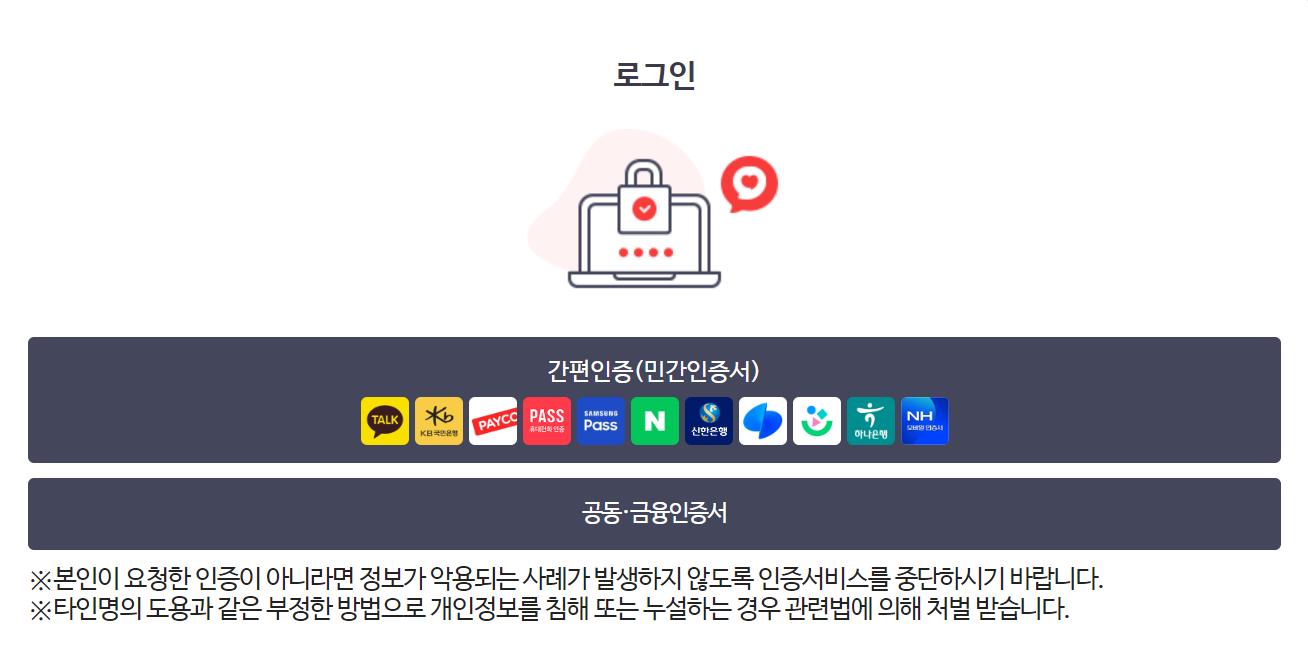 로그인 시 간편 인증 또는 공동. 금융 인증서로 로그인 가능합니다.