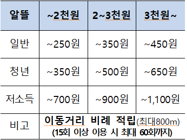 | 이동거리 관계없이 지출금액의 일정 비율 환급 출도착 기록 불필요 ![]() |