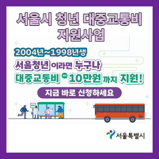 서울시의 여러 청년 지원 사업 중 실생활에 밀접하게 연관되어 있는 서울시 청년 대중교통비 10만원 지원사업은 만 19~24세 청년들에게 연간 10만원 한도의 교통마일리지를 지급하는 사업입니다. 이제 한 달 남은 기간만 신청을 받고 있으니 꼭 신청해서 혜택을 보시기 바랍니다. 청년대중교통비 지원사업의 자세한 내용은 아래 링크를 확인해보세요.