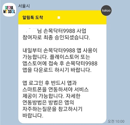 4) 다음 날이 되니 서울시에서 카톡이 날아오네요.